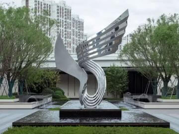 - ??工藝細(xì)節(jié)??:激光切割 + 數(shù)控折彎技術(shù),將不銹鋼板材精準(zhǔn)切割成不同弧度的飄帶片段,再通過(guò)手工鍛造與機(jī)械打磨結(jié)合,讓飄帶呈現(xiàn) “層層疊疊、錯(cuò)落有致” 的層次感,仿佛微風(fēng)中飄動(dòng)的綢帶,與水景呼應(yīng)時(shí)更顯靈動(dòng)。。飄帶層層遞進(jìn),高5.8m,共7層曲面。