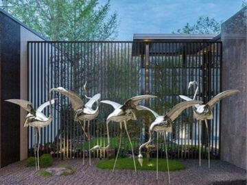 - 手工鍛造塑形:工匠按圖紙裁切 304 不銹鋼板材,通過 “加熱軟化→手工敲打→定型校正” 步驟,逐一打造每只仙鶴的部件 —— 脖頸用細(xì)薄板材鍛造(模擬修長(zhǎng)感),翅膀用弧形板材敲打(呈現(xiàn)半展的動(dòng)態(tài)),足部做纖細(xì)處理(貼合 “仙鶴” 的優(yōu)雅特質(zhì));